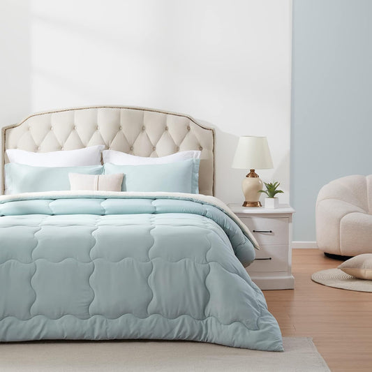 King Size Lightweight Reversible Comforter Set 3-Piece Solid Color Comforter Set for All Seasons Ultra-Soft down Alternative Duvet Insert with Pillow Shams (102X90,Sage Green/Ivory)